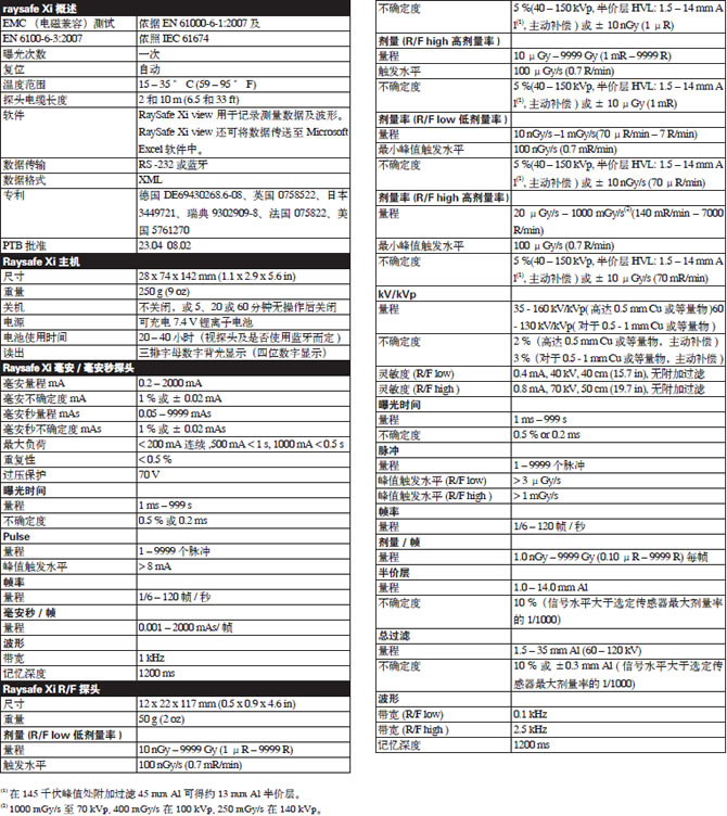 RaySafe Xi 主机 RaySafe Xi主机分为两个版本:一个具有mA/mAs测量功能,一个不具有此测量功能。对于RaySafe Xi探头,只要主机固件支持探头,这两个版本完全兼容并且可以互换探头。 RaySafe Xi主机自动识别所连接的探头并显示可供该探头使用的设置和参数。内置的主动补偿功能可以针对不同的光束质量、滤过和温度自动实现修正。在透视测量、散漏射线测量或光测量期间,测量值会持续更新。数据将发送到串行端口,RaySafe Xi附带的软件程序RaySafe Xi view将测量数据及波形显示在电脑上。